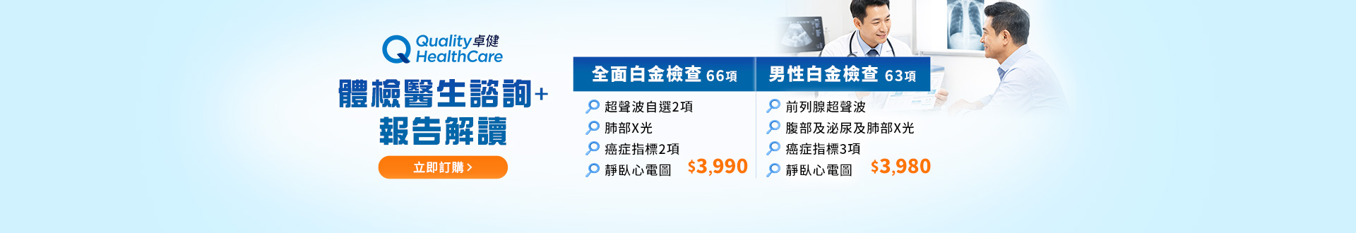- 所有健康檢查/服務並非作為醫務診斷或治療用途。當閣下身體健康出現任何疾病徵兆時,應立即諮詢有認可資格的醫生,作出診斷及治療。