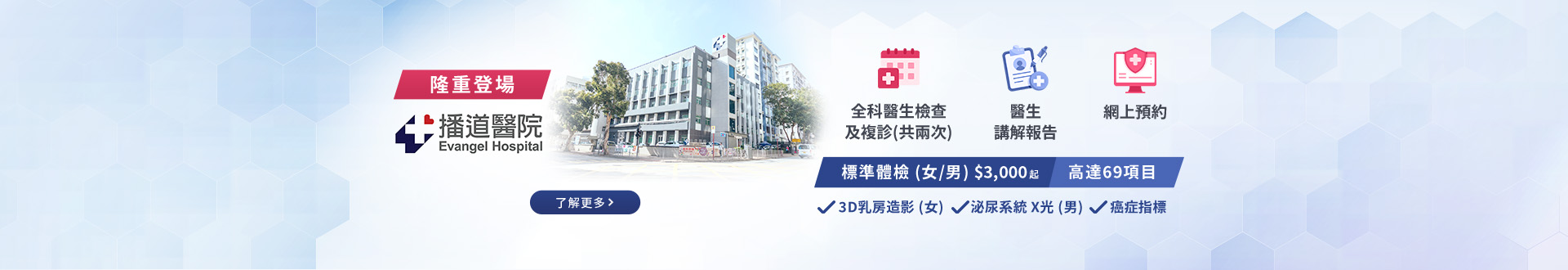 客戶收到由健康網購寄出之確認成功付款電郵後,相關電郵亦會發送至播道醫院的指定郵箱,而客戶所購買的體檢或醫療服務亦已經成功預約。除非醫院有額外資訊需要通知客人,否則客戶只須於所預訂的指定檢查日期和時間,親臨本院進行檢查或接受服務便可。