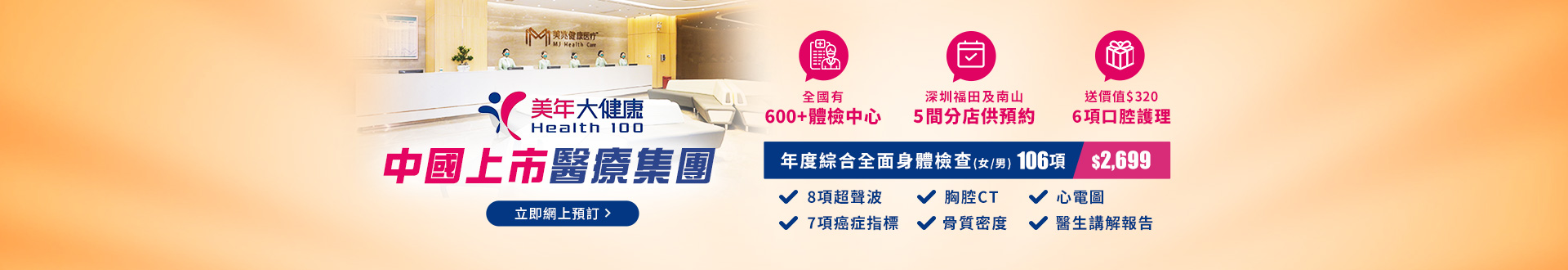 - 訂單如需改期,請至少提前1日聯絡美年大健康 (聯絡電話:+852 5630 7213)。