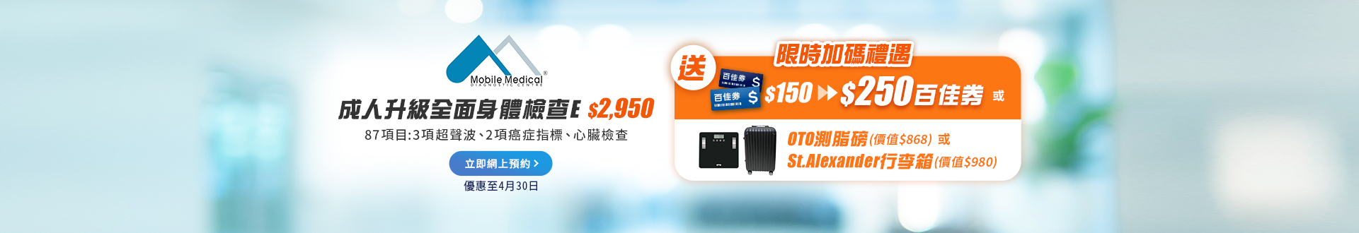 - 一般身體檢查計劃有效期為12個月,客戶必須於12個月內(由確認付款日期起計)接受有關檢查,客戶需提前1個月預約相關檢查,逾期作廢。