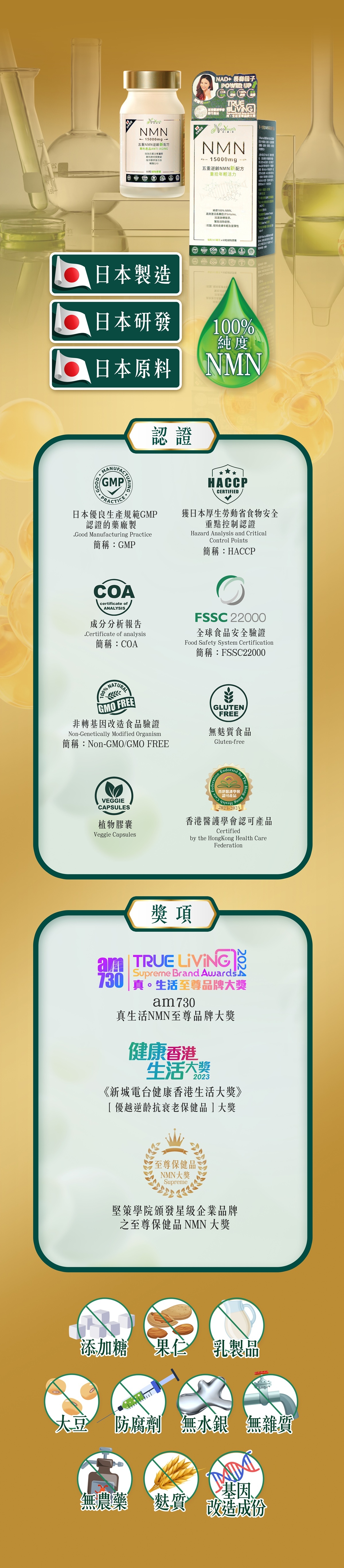 • 香港醫務學會認可產品, 榮獲am730香港真、生活NMN至尊品牌大獎