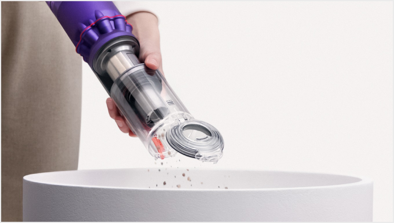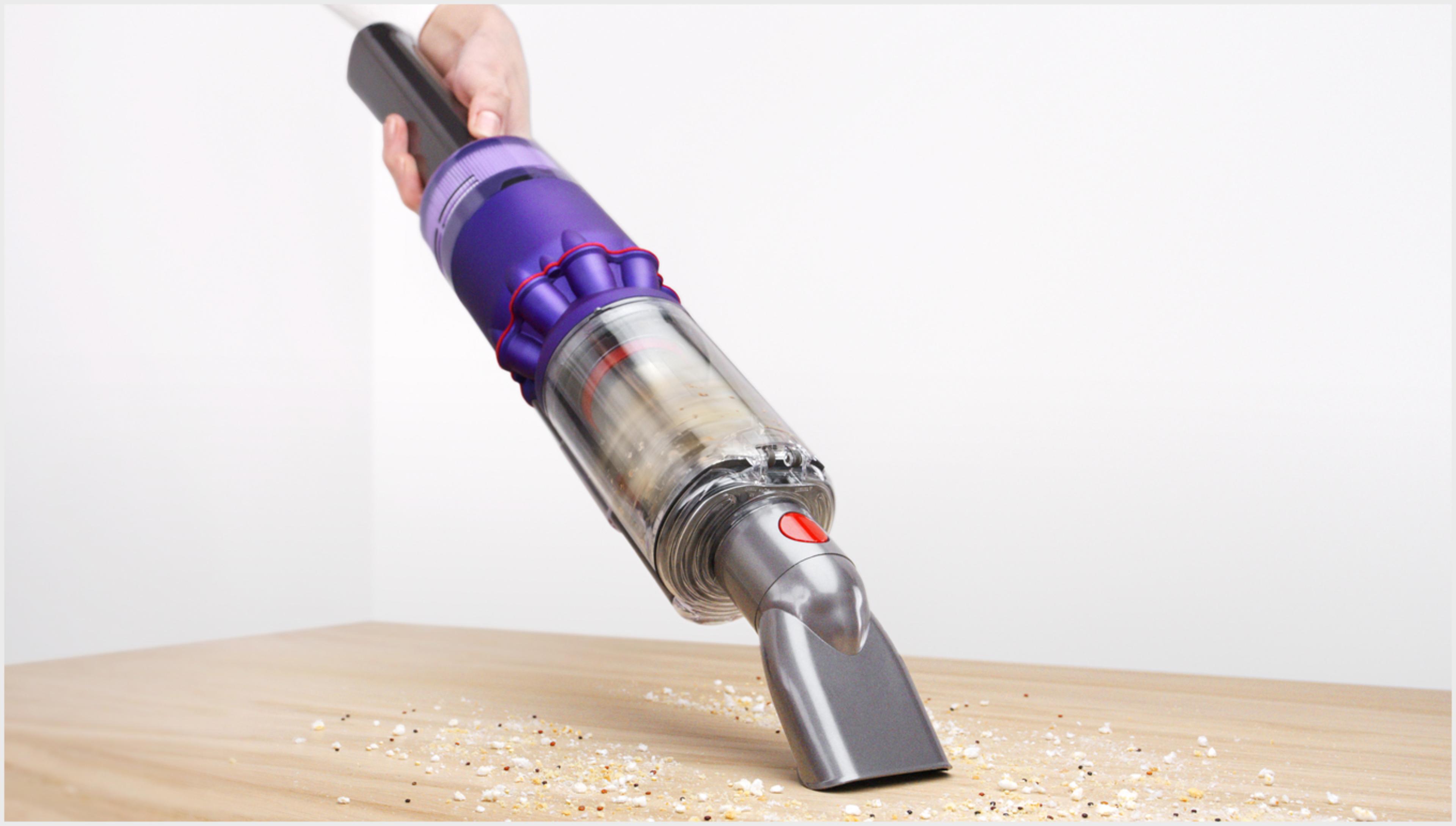 - 集 Dyson 科技於一身,可以平貼地面,並且能深入清潔狹窄空間。