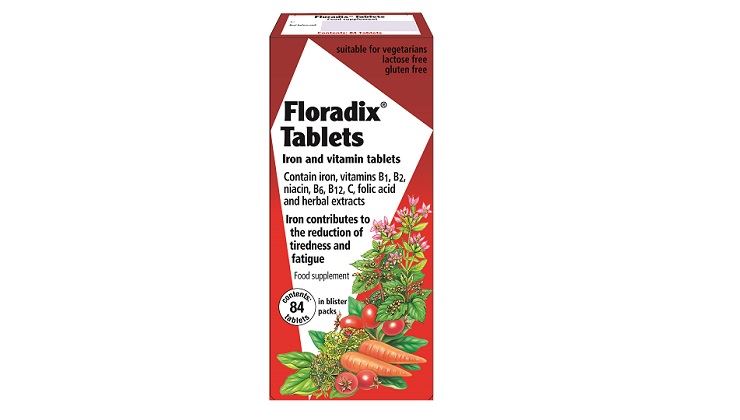 Floradix鐵元從葡萄糖酸亞鐵,維生素B2,B6,B12和C提取有機鐵(II)。這有助於減少疲勞和正常代謝。