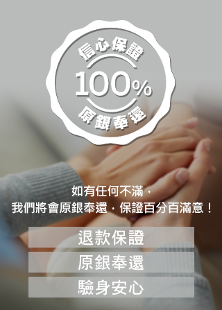 健康網購 health.ESDlife 之100%信心保證涵蓋所有體檢中心提供之身體檢查計劃*,包括「A.退款保證」及「B. 最低價格保證」。100%信心保證適用於訂購後3個月內、尚未進行體檢,或已進行體檢但未領取身體檢查報告的客戶。如對檢驗過程或服務有任何不滿,請於完成驗身後下一個工作天內,透過電話或電郵向健康網購 health.ESDlife提出相關要求申請。